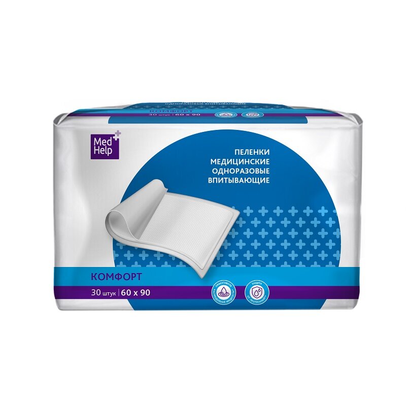 Пеленки впитывающие MedHelp одноразовые для взрослых 60 см х 90 см 30 шт.