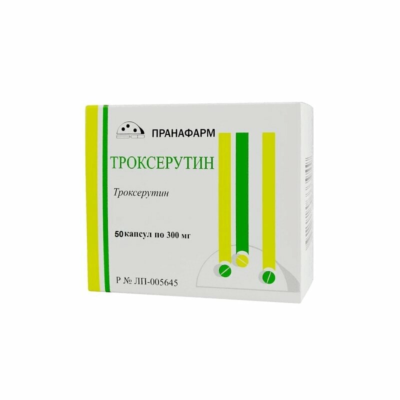Троксерутин представляет собой производное рутина (флавоноид), обладает Р-витаминной активностью, оказывает венотонизирующее, ангиопротекторное, противоотечное, антиоксидантное и противовоспалительное действие. Троксерутин блокирует гиалуронидазу, стабилизирует гиалуроновую кислоту клеточных мембран и уменьшает их проницаемость. Обладает антиоксидантной активностью, в результате чего предотвращает окисление аскорбиновой кислоты, адреналина и липидов. Кроме того, уменьшает проницаемость и ломкость капилляров, предотвращает повреждение базальной мембраны эндотелиальных клеток при воздействии на нее различных факторов. Снижает воспаление в сосудистой стенке, ограничивая адгезию тромбоцитов к ее поверхности. Ингибирует агрегацию и увеличивает степень деформации эритроцитов. Пациентам с хронической венозной недостаточностью рекомендуется применение, как в начальных, так и на поздних стадиях заболевания. Возможно применение в качестве одного из компонентов комплексного лечения. Троксерутин уменьшает отечность и ощущение тяжести в ногах, снижает интенсивность боли и судорог, улучшает трофику тканей. Троксерутин облегчает симптомы, связанные с геморроем (боль, экссудация, зуд, кровотечение). Благодаря воздействию на проницаемость и резистентность стенок капилляров троксерутин способствует замедлению прогрессирования диабетической ретинопатии. Влияние троксерутина на реологические свойства крови способствует прекращению развития микротромбоза сосудов сетчатки.