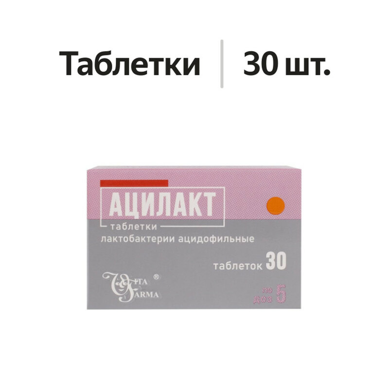 1 доза содержит: живые штаммы Lactobacillus acidophilus (лиофилизированные в среде культивирования с добавление защитной сахарозно-желатино-молочной среды и спрессованные в одну таблетку). Вспомогательные вещества: лактоза, кальция стеарат, тальк.