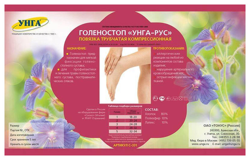 Унга-Рус повязка трубчатая компрессионная Голеностоп размер 2