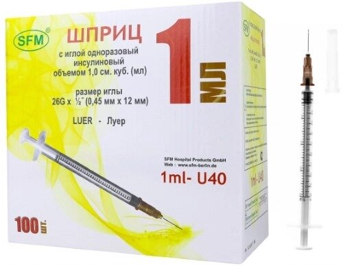 SFM Шприц 1 мл U-40 3-х компонентный инсулиновый 26G 0.45 х 12 мм 100 шт.