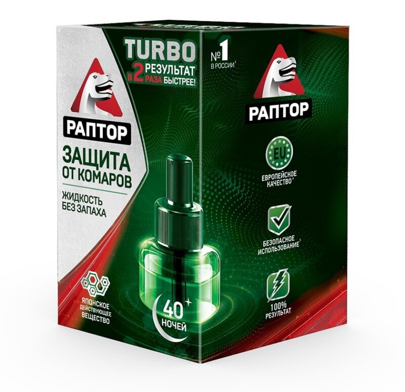 Жидкость для электрофумигаторов Раптор Турбо без запаха 40 ночей без комаров 35 мл