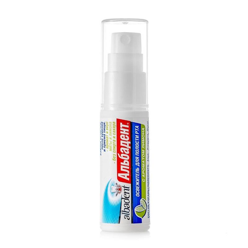 Освежитель для полости рта Альбадент лимон - освежает дыхание после еды, курения, кофе, оставляет приятное лимонное послевкусие.