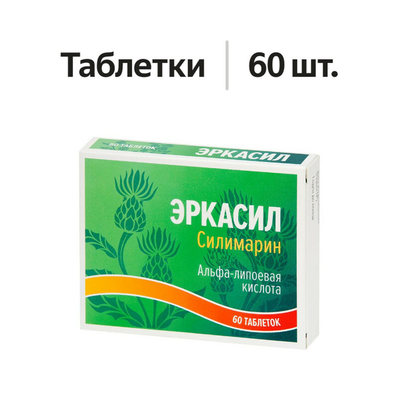 Эркасил содержит силимарин и альфа-липоевую кислоту - два компонента, способствующих поддержанию здоровья печени и профилактике нарушений ее работы.