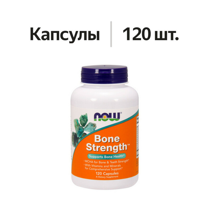 Комплекс NOW Bone Strength эффективно укрепляет кости, заботится о здоровье и красоте зубов, ногтей и волос. Остеопороз – это заболевание скелета, при котором плотность костей уменьшается, повышается их хрупкость и риск переломов. На начальных стадиях остеопороз может протекать бессимптомно и часто диагностируется только после перелома при незначительной травме. Заболеванию больше всего подвержены женщины после 45 лет. Комплекс NOW Бон Стрейнч включает все необходимое для костной системы:кальций в форме, идентичной той, что содержится в костной ткани, витамин D3 для его лучшего усвоения, витамин К2, необходимый для закрепления кальция в костях, магний – для гибкости костей, микроэлементы (медь, цинк, бор и марганец) — для хорошего обмена веществ в костной ткани, экстракт Хвоща полевого и витамин С – для образования коллагена. NOW Бон Стрейнч рекомендуется применять при: недостатке кальция и магния в организме, хрупкости ногтей и выпадении волос, остеопорозе, женщинам – в период менопаузы, частых переломах. NOW Бон Стрейнч не содержит ГМО и глютена.
