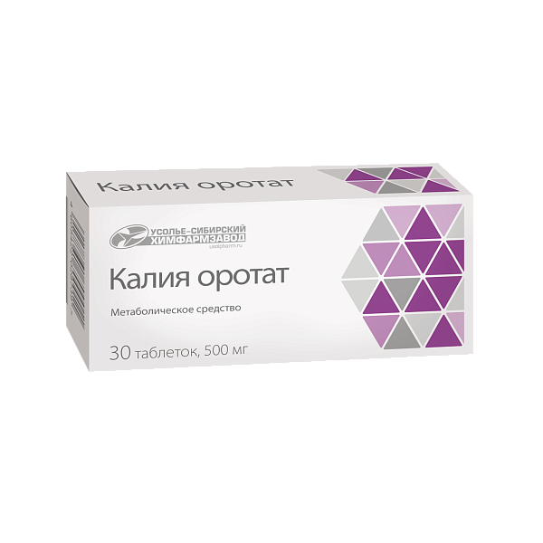 1 таблетка содержит: действующее вещество: калия оротат 500 мг; вспомогательные вещества: лактозы моногидрат 66 мг; желатин медицинский 3 мг; стеариновая кислота 7.4 мг; крахмал картофельный до получения таблетки массой 750 мг