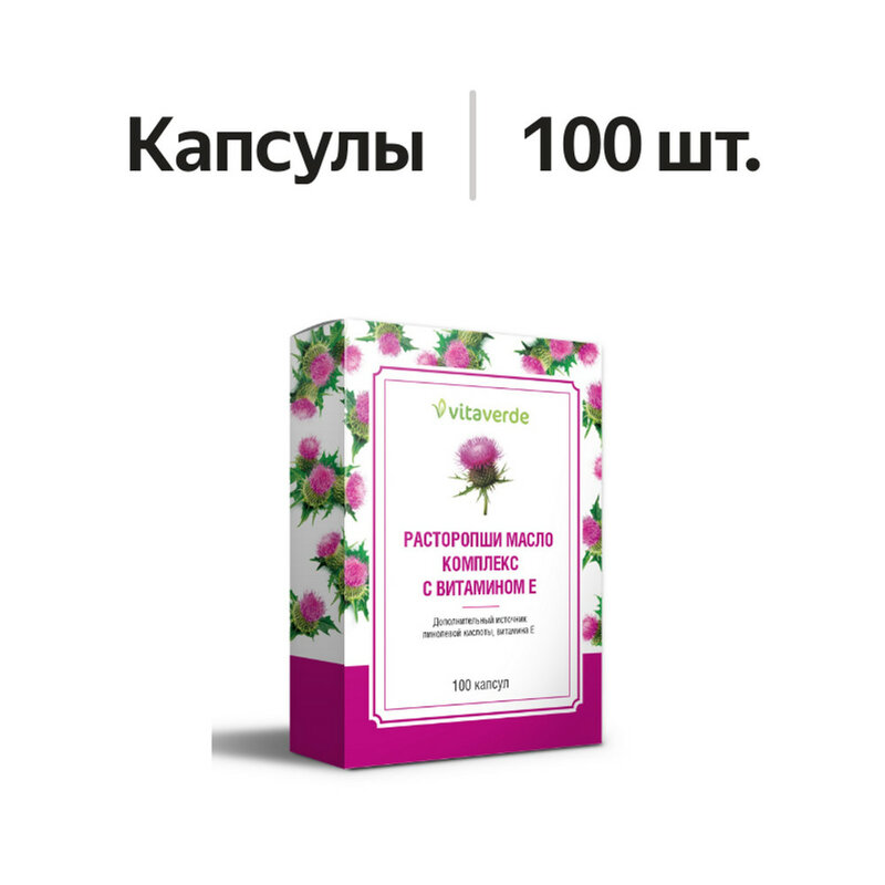 Vita Verde Масло расторопши в капсулах - биологически активная добавка к пище, полезна для здоровья благодаря содержанию линолевой кислоты и витаминов Е и D.