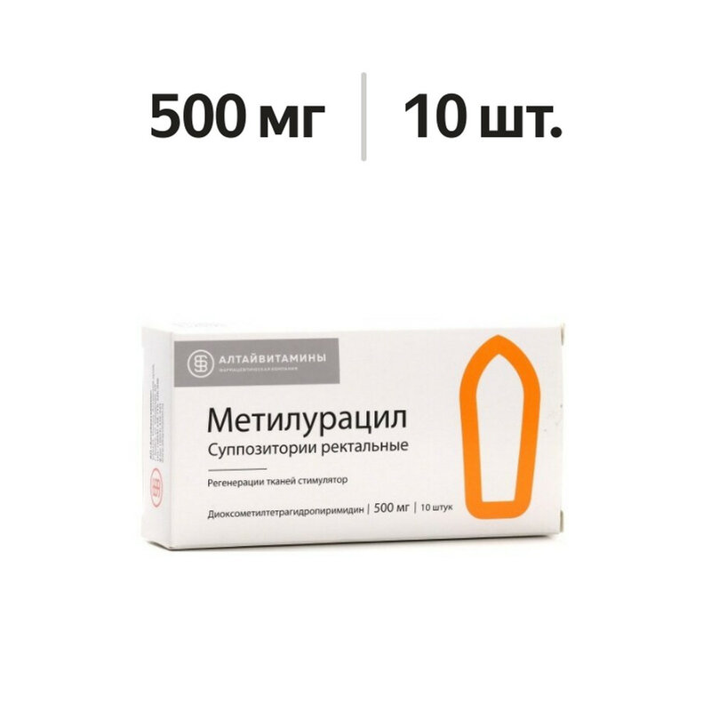 Диоксометилтетрагидропиримидин (метилурацил) – 500 мг, вспомогательное вещество: твердый жир – достаточное количество для получения суппозитория массой 2,3 г
