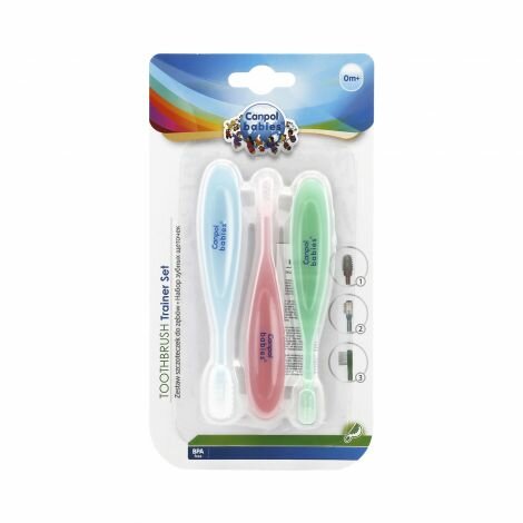 Практичный набор щеток для ежедневного ухода, который может долго прослужит ребенку. Он состоит из массажной щетки, резиновой щетки для чистки первых зубов и щетки с нейлоновой щетиной, предназначенной для детей старшего возраста. Набор позволяет бережно очистить десна и первые зубы без их повреждения.