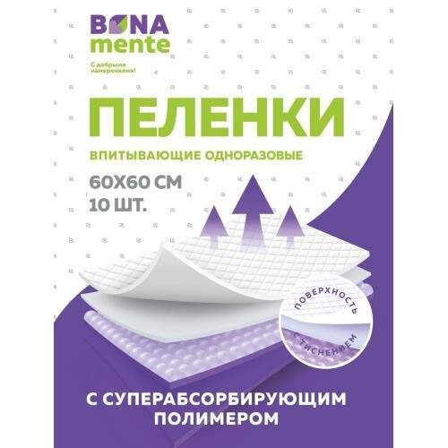 Пеленки впитывающие Bona Mente 60 x 60 см 10 шт.