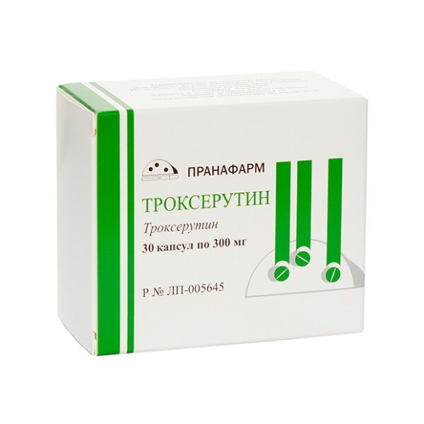 Средство для лечения хронической венозной недостаточности, полусинтетический биофлавоноид (производное рутина) класса бензопиранов, обладает Р-витаминной активностью, оказывает венотонизирующее, ангиопротекторное, противовоспалительное и противоотечное действие, уменьшает проницаемость и ломкость капилляров. Его фармакодинамические свойства связаны с участием биофлавоноидов троксерутина в окислительно-восстановительных процессах и ингибирования гиалуронидазы. Подавляя гиалуронидазу, троксерутин стабилизирует гиалуроновую кислоту клеточных оболочек, уменьшает их проницаемость. Обладает антиоксидантной активностью, в результате чего предотвращает окисление аскорбиновой кислоты, адреналина и липидов. Кроме того, уменьшает проницаемость и ломкость капилляров, предотвращает повреждение базальной мембраны эндотелиальных клеток при воздействии на нее различных факторов. Троксерутин увеличивает плотность сосудистой стенки, уменьшает экссудацию жидкой части плазмы и диапедез клеток крови. Снижает экссудативное воспаление в сосудистой стенке, уменьшая адгезию тромбоцитов к ее поверхности. Ингибирует агрегацию и увеличивает степень деформации эритроцитов. Применение троксерутина возможно как на начальных, так и на поздних стадиях лечения хронической венозной недостаточности, возможно применение в качестве одного из компонентов комплексного лечения. Троксерутин уменьшает отечность и ощущение тяжести в ногах, снижает интенсивность боли и судорог, улучшает трофику тканей. Троксерутин облегчает симптомы, связанные с геморроем (боль, экссудация, зуд, кровотечение). Благодаря воздействию на проницаемость и резистентность стенок капилляров троксерутин способствует замедлению прогрессирования диабетической ретинопатии. Влияние троксерутина на реологические свойства крови способствует предотвращению развития микротромбоза сосудов сетчатки.