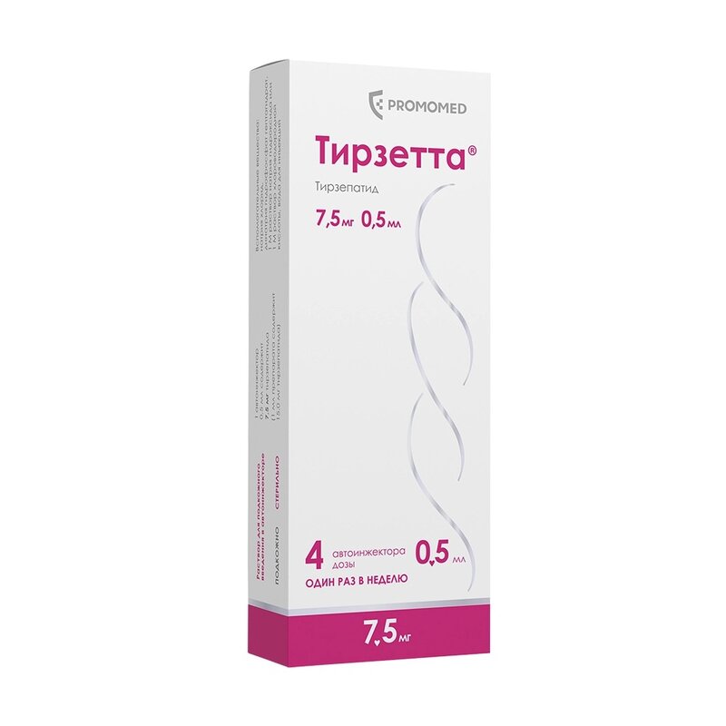 Каждый шприц/картридж содержит 7,5 мг тирзепатида в 0,5 мл раствора (15 мг/мл).