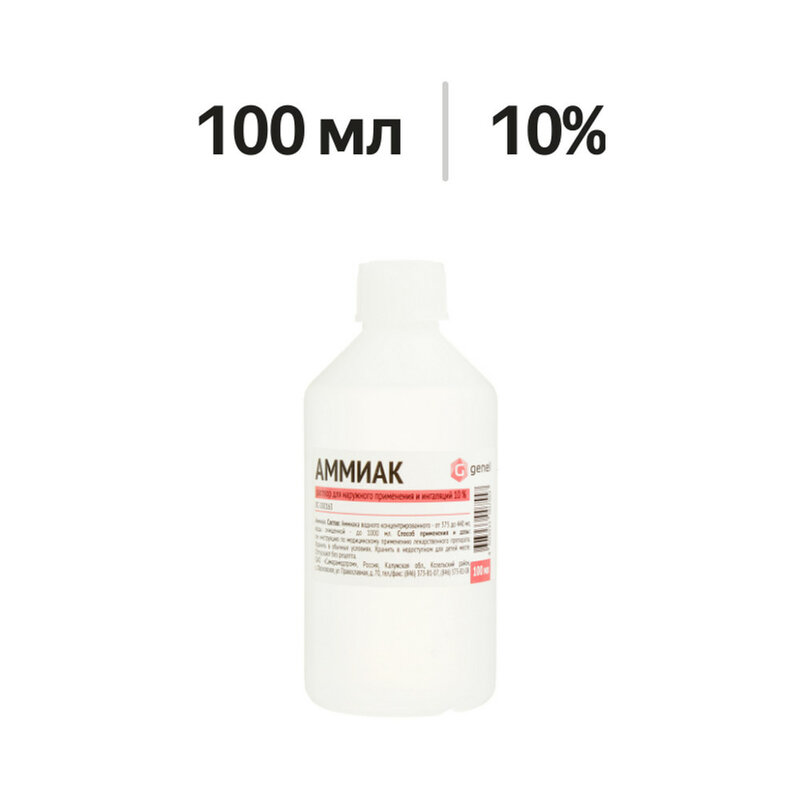 Действующее вещество: аммиак водный концентрированный - 440 мл. Вспомогательное вещество: вода очищенная - до 1 л.