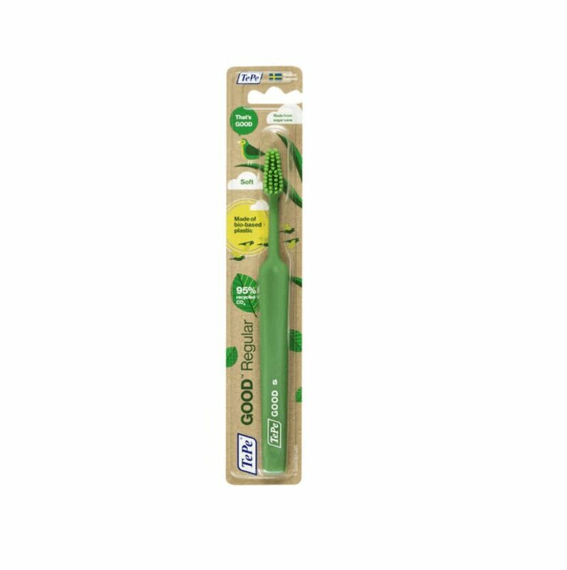 TePe GOOD ™ Обычная мягкая зубная щетка является частью уникальной линейки TePe GOOD ™, изготовленной из пластика на биологической основе — без ущерба для качества, эффективности или дизайна продукта. Зубная щетка TePe GOOD ™ — это удобная зубная щетка, подходящая для детей старшего возраста и взрослых. Коническая головка щетки улучшает доступ, а закругленные нити обеспечивают бережную очистку. Изготовлен из 96% биопласта Коническая головка щетки для легкого доступа Закругленные нити для бережной и эффективной очистки
