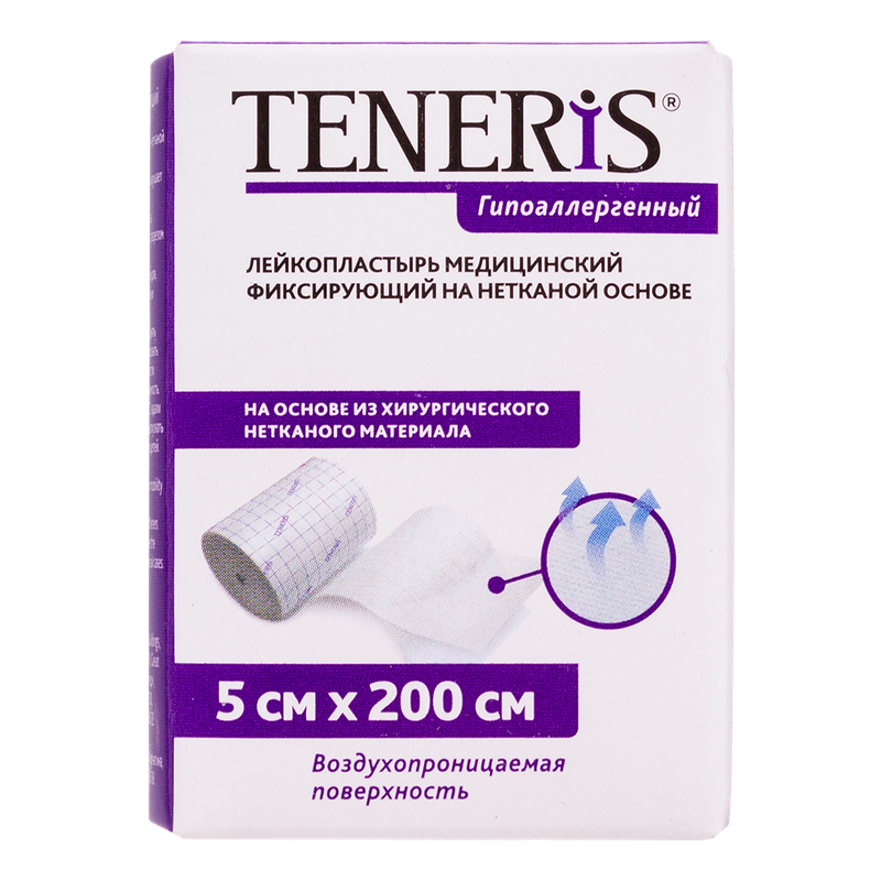 Teneris лейкопластырь фиксирующий на нетканой основе 5 х 200 см