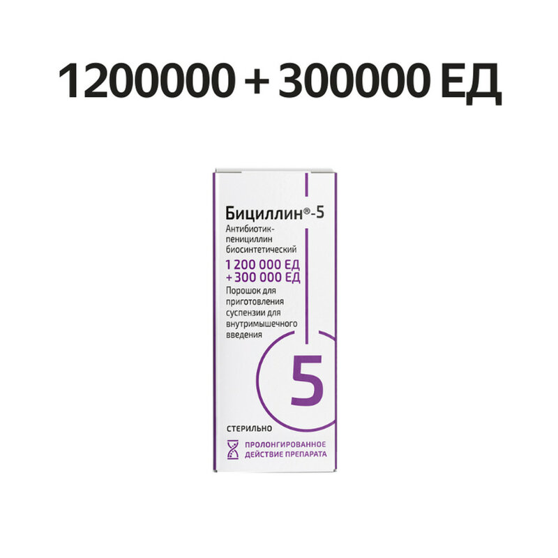 бензатина бензилпенициллин 1200000 ЕД, бензилпенициллин прокаина (бензилпенициллина новокаиновая соль) 300000 ЕД