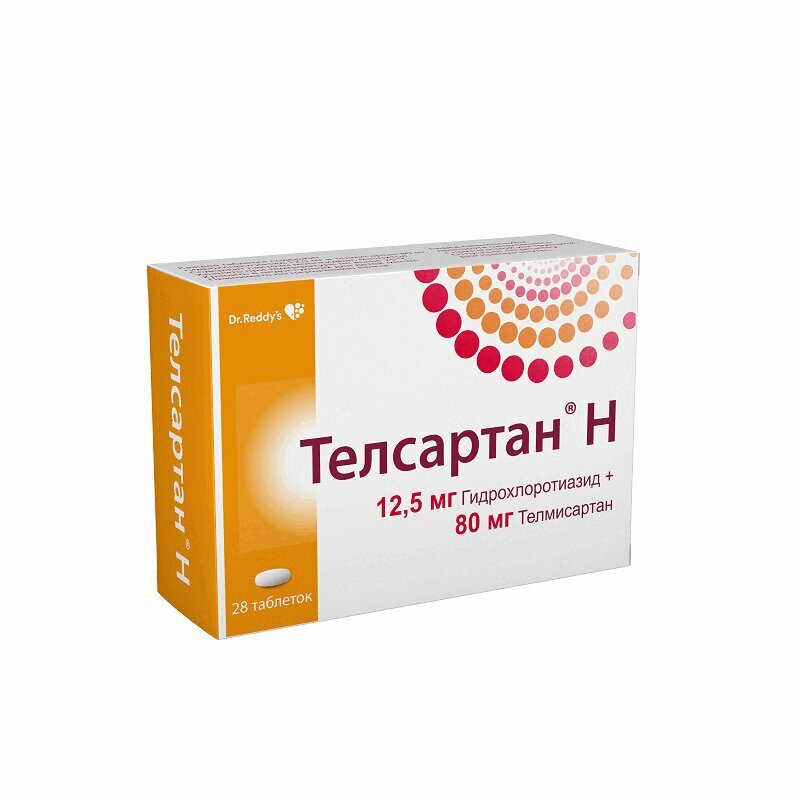 гидрохлоротиазид 12.5 мг, телмисартан 80 мг, вспомогательные вещества: меглюмин - 24 мг, натрия гидроксид - 6.72 мг, повидон К30 - 27.1 мг, полисорбат 80 - 1.3 мг, маннитол - 479.38 мг, лактозы моногидрат - 92.5 мг, магния стеарат - 12.15 мг, краситель железа оксид красный (Е172) - 0.35 мг