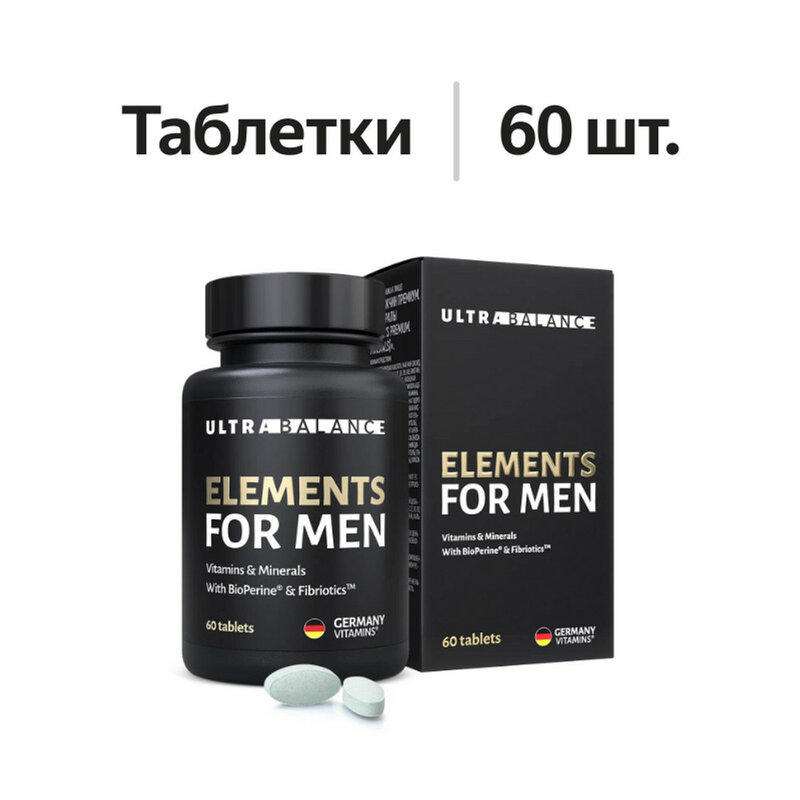 Премиальный витаминно-минеральный комплекс от УльтраБаланс является незаменимым источником питания организма современными витаминами и минералами. Основные компоненты произведены в Европе и США, имеют максимально допустимую дозировку в России. Дополнительно в составе присутствует биоперин (премиальный пиперин – экстракт черного перца), который повышает биодоступность витаминно-минеральных компонентов до 60%. Мульти витамины «Элементс фор мен / вумен» поддержат Ваш иммунитет, тело, суставы, связки, мозг, глаза, кожу, волосы, ногти, улучшат сон и метаболизм в организме. Поможет просыпаться с утра пораньше в отличном настроении, находиться весь день на живой энергии, к вечеру чувствовать себя хорошо и спокойно засыпать. В этом состоянии легко похудеть или заниматься жиросжиганием, а так же иметь высокие физические нагрузки в спорте и на активном отдыхе.