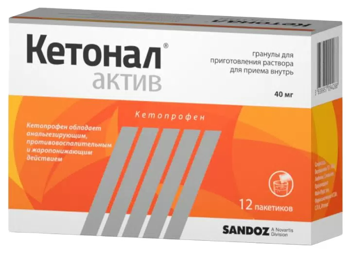 Один пакетик (1 г) содержит: действующее вещество: кетопрофена лизиновая соль - 40 мг (эквивалентно 25 мг кетопрофена); вспомогательные вещества: маннитол - 911 мг, повидон (К 30) - 20 мг, ароматизатор мятный - 10 мг, натрия хлорид - 10мг, натрия сахаринат – 7.5 мг, кремния диоксид коллоидный – 1.5 мг.