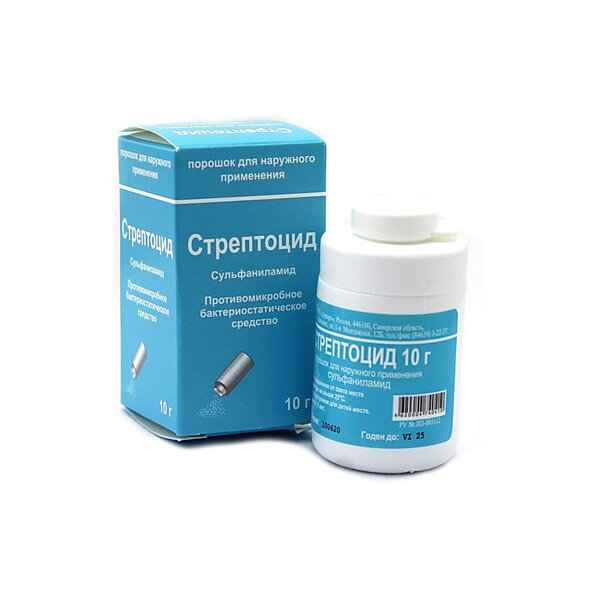 Действующее вещество: сульфаниламид 10,0 г.