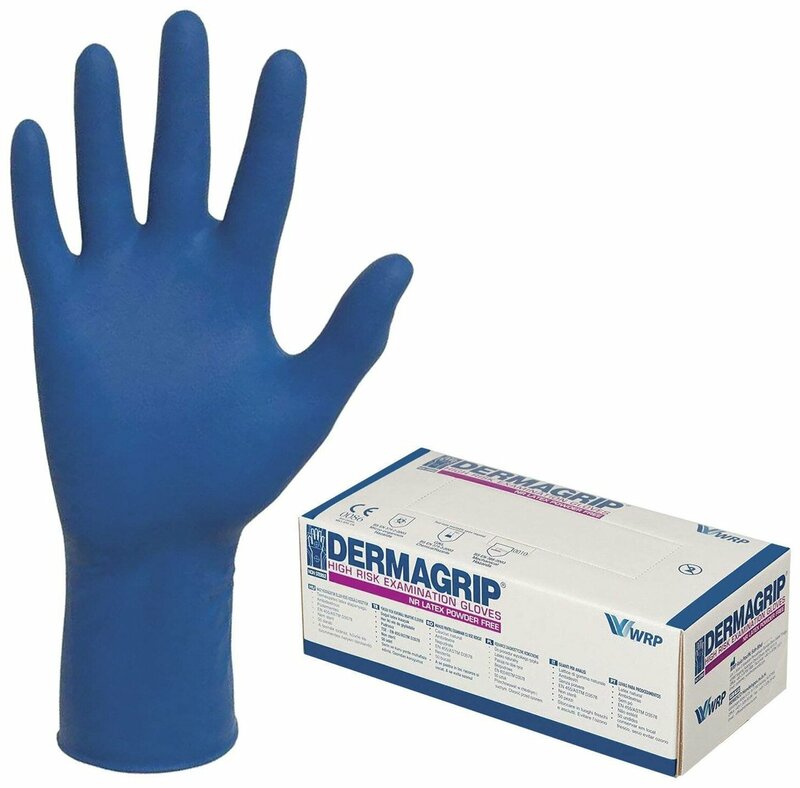 Перчатки Dermagrip High Risk латексные смотровые нестерильные неопудренные размер М 25 пар