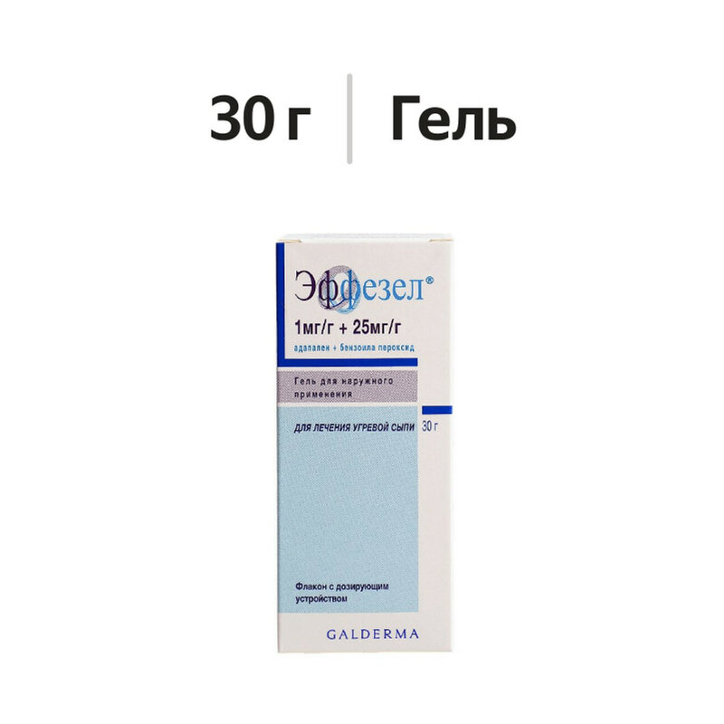 Наружно. Наносить кончиками пальцев тонким слоем на всю пораженную поверхность 1 раз/сут вечером на чистую и сухую кожу, избегая попадания геля в глаза, на губы, слизистые оболочки и уголки носа. Терапевтический эффект развивается через 1-4 недели лечения. Продолжительность лечения должна устанавливаться врачом на основании клинического состояния пациента. В случае появлении признаков раздражения кожи рекомендуется применение некомедоногенных косметических средств с увлажняющим действием, в зависимости от степени раздражения кожи число нанесений может быть сокращено (например, через день), лечение может быть временно приостановлено до исчезновения признаков раздражения или полностью прекращено. Возобновление лечения возможно после консультации с врачом. Пациенты с нарушением функции печени и/или почек Исследования фармакокинетики у пациентов с нарушениями, которые могли бы препятствовать всасыванию, распределению, метаболизму или выведению препарата Эффезел®, в частности, с заболеваниями печени и/или почек в анамнезе, не проводились. Пациенты пожилого возраста Безопасность и эффективность применения препарата Эффезел® у пожилых пациентов в возрасте ≥65 лет не установлена.