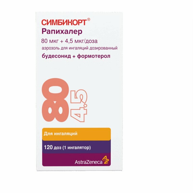 Для ингаляционного применения. Препарат Симбикорт® Рапихалер поступает непосредственно в легкие после ингаляции, поэтому пациента необходимо обучить правильному использованию ингалятора (см. подраздел "Инструкция по использованию препарата Симбикорт® Рапихалер"). Пациента следует информировать о необходимости регулярно использовать препарат Симбикорт® Рапихалер, т.е. продолжать прием даже при отсутствии симптомов заболевания, чтобы достичь наибольшего терапевтического эффекта. Бронхиальная астма Доза препарата Симбикорт® Рапихалер должна регулярно контролироваться лечащим врачом, который корректирует ее индивидуально в зависимости от тяжести заболевания в соответствии с действующими рекомендациями. Первоначальную дозу подбирают для достижения эффективного контроля симптомов. После достижения желаемого клинического эффекта дозу следует постепенно снижать до минимальной дозы, позволяющей оптимально контролировать симптомы бронхиальной астмы. Таким образом, впоследствии возможен переход к терапии только ингаляционным ГКС. При прекращении лечения препаратом Симбикорт® Рапихалер рекомендуется постепенно снижать дозу. В случае тяжелой бронхиальной астмы необходим регулярный врачебный контроль, т.к. возможно возникновение опасных для жизни ситуаций. У пациентов с тяжелой бронхиальной астмой отмечаются постоянные симптомы заболевания, частые обострения, а значения максимальной скорости выдоха составляют менее 60% от нормального значения, варьируют в пределах более 30% и не нормализуются, несмотря на прием бронходилататоров. Таким пациентам назначают ингаляционные ГКС в высоких дозах или пероральные ГКС. При внезапном ухудшении симптомов возможно увеличение дозы ГКС под контролем врача. При этом увеличение дозы ингаляционного ГКС не должно достигаться за счет более частого применения комбинированного препарата. При нестабильном течении бронхиальной астмы возможен переход на терапию монопрепаратами. Рекомендации по применению препарата Симбикорт® Рапихалер у пациентов, получающих пероральные ГКС, приведены в разделе "Особые указания". Дозы Бронхиальная астма Пациенты принимают поддерживающую суточную дозу препарата Симбикорт® Рапихалер и, при необходимости, быстродействующий бронходилататор для купирования симптомов. Дети в возрасте от 6 до 11 лет Симбикорт® Рапихалер 80 мкг + 4.5 мкг/доза: 2 ингаляции 2 раза/сут. Максимальная суточная доза составляет 4 ингаляции по 80 мкг + 4.5 мкг/доза. Дети в возрасте от 12 до 17 лет Симбикорт® Рапихалер 80 мкг + 4.5 мкг/доза: 2 ингаляции 1-2 раза/сут. В случае усиления симптомов можно временно увеличить дозу (не более 1 недели) до 4 ингаляций 2 раза/сут. Симбикорт® Рапихалер 160 мкг + 4.5 мкг/доза: 2 ингаляции 1-2 раза/сут. В случае усиления симптомов можно временно увеличить дозу (не более 1 недели) до 4 ингаляций 2 раза/сут. Взрослые (от 18 лет) Симбикорт® Рапихалер 80 мкг + 4.5 мкг/доза: 2 ингаляции 1-2 раза/сут. В случае усиления симптомов можно увеличить дозу до 4 ингаляций 2 раза/сут временно или в качестве поддерживающей дозы. Симбикорт® Рапихалер 160 мкг + 4.5 мкг/доза: 2 ингаляции 1-2 раза/сут. В случае усиления симптомов можно временно увеличить дозу до 4 ингаляций 2 раза/сут временно или в качестве поддерживающей дозы. Статистически была установлена эквивалентность препаратов Симбикорт® Турб