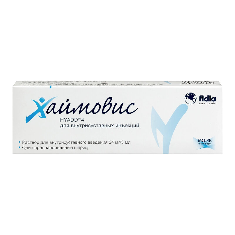 Препарат Хаймовис® представляет собой гидрогель, который производится в соответствии с требованиями Надлежащей производственной практики (Good Manufacturing Practice, GMP) и содержит HYADD®4, новую молекулу, запатентованную компанией Fidia, в концентрации 8 мг/мл. HYADD®4 представляет собой новое производное гиалуроновой кислоты: частичный гексадециламид гиалуроновой кислоты (частичный в связи с очень низким уровнем модификации гиалуроновой кислоты, приблизительно в 3% молярной концентрации для сохранения биологической совместимости).