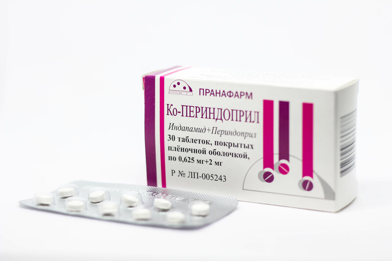 Периндоприл оказывает ингибирующее действие на РААС и уменьшает выведение ионов калия почками на фоне приема индапамида. Со стороны системы кроветворения: очень редко - тромбоцитопения, лейкопения/нейтропения, агранулоцитоз, апластическая анемия, гемолитическая анемия. Со стороны нервной системы: часто - парестезия, головная боль, головокружение, астения, вертиго; нечасто - нарушение сна, лабильность настроения; очень редко - спутанность сознания; частота неизвестна - обморок. Со стороны органа зрения: часто - нарушение зрения. Со стороны органа слуха: часто - шум в ушах. Со стороны сердечно-сосудистой системы: часто - выраженное снижение АД, в том числе ортостатическая гипотензия; очень редко - нарушения ритма сердца, в т.ч. брадикардия, желудочковая тахикардия, мерцательная аритмия, а также стенокардия и инфаркт миокарда, возможно, вследствие избыточного снижения АД у пациентов группы высокого риска; частота неизвестна - полиморфная желудочковая тахикардия типа "пируэт" (возможно, с летальным исходом). Со стороны дыхательной системы: часто - на фоне применения ингибиторов АПФ может возникать сухой кашель (длительно сохраняющийся во время приема препаратов этой группы и исчезающий после их отмены), одышка; нечасто - бронхоспазм; очень редко - эозинофильная пневмония, ринит. Со стороны пищеварительной системы: часто - сухость слизистой оболочки полости рта, тошнота, рвота, боль в животе, боль в эпигастрии, нарушение вкусового восприятия, снижение аппетита, диспепсия, запор, диарея; очень редко - ангионевротический отек кишечника, холестатическая желтуха, панкреатит, гепатит цитолитический или холестатический; частота неизвестна - печеночная энцефалопатия у пациентов с печеночной недостаточностью. Со стороны кожи и подкожных тканей: часто - кожная сыпь, зуд, макуло-папулезная сыпь; нечасто - ангионевротический отек лица, губ, конечностей, слизистой оболочки языка, голосовых складок и/или гортани, крапивница, реакции повышенной чувствительности у пациентов, предрасположенных к бронхообструктивным и аллергическим реакциям, пурпура; у пациентов с острой формой системной красной волчанки возможно ухудшение течения заболевания; очень редко - многоформная эритема, токсический эпидермальный некролиз, синдром Стивенса-Джонсона; отмечены случаи реакции фоточувствительности. Со стороны костно-мышечной системы и соединительной ткани: часто - спазмы мышц. Со стороны мочевыделительной системы: нечасто - почечная недостаточность; очень редко - острая почечная недостаточность. Со стороны репродуктивной системы: нечасто - импотенция. Общие реакции: часто - астения; нечасто - повышенное потоотделение. Лабораторные показатели: редко - гиперкальциемия; частота неизвестна - увеличение интервала QT на ЭКГ; повышение концентрации мочевой кислоты и глюкозы в плазме крови; повышение активности печеночных ферментов; гипокалиемия, особенно значимая для пациентов, относящихся к группе риска; гипонатриемия и гиповолемия, приводящие к дегидратации и ортостатической гипотензии. Одновременная гипохлоремия может привести к метаболическому алкалозу компенсаторного характера (вероятность и тяжесть данного эффекта низка); гиперкалиемия, чаще преходящая; незначительное повышение концентрации креатинина в моче и в плазме крови, проходящее после отм