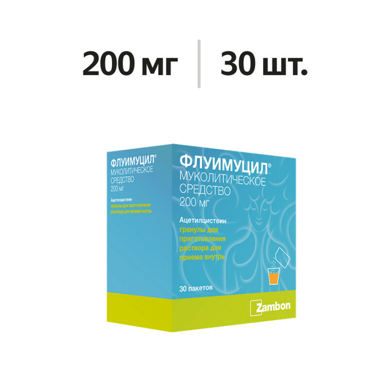 Муколитическое средство, разжижает мокроту, увеличивает ее объем, облегчает отделение мокроты. Действие связано со способностью свободных сульфгидрильных групп ацетилцистеина разрывать внутри- и межмолекулярные дисульфидные связи кислых мукополисахаридов мокроты, что приводит к деполимеризации мукопротеинов и уменьшению вязкости мокроты.Кроме того снижает индуцированную гиперплазию мукоидных клеток, усиливает выработку поверхностно-активных соединений путем стимуляции пневмоцитов II типа, стимулирует мукоцилиарную активность, что приводит к улучшению мукоцилиарного клиренса.