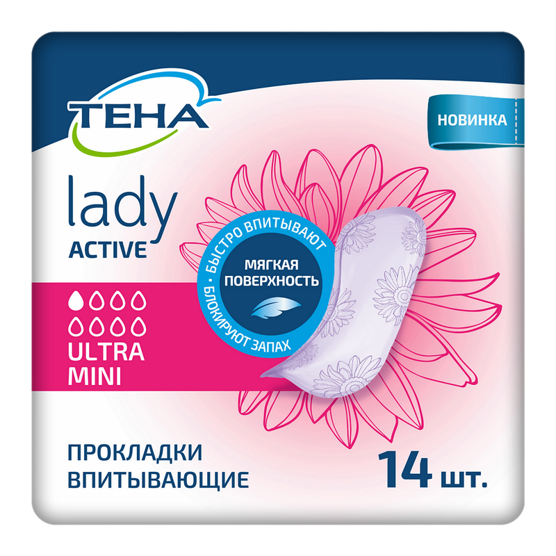 ТЕНА Lady Active Ultra Mini — это ультратонкие урологические прокладки для защиты при капельном недержании и от любых других видов протеканий. Выполнены в женственном дизайне с цветочным принтом. Обеспечивают тройную защиту от протеканий, влаги и запаха. Ультрамягкая поверхность приятна на ощупь и нежно соприкасается с кожей. Благодаря гранулам суперабсорбента в составе впитывающего слоя быстро поглощают влагу, удерживая ее внутри прокладки, и нейтрализуют запах. Не содержат ароматизаторов, отдушек и латекса. Каждая прокладка индивидуально упакована, и ее удобно носить с собой.
