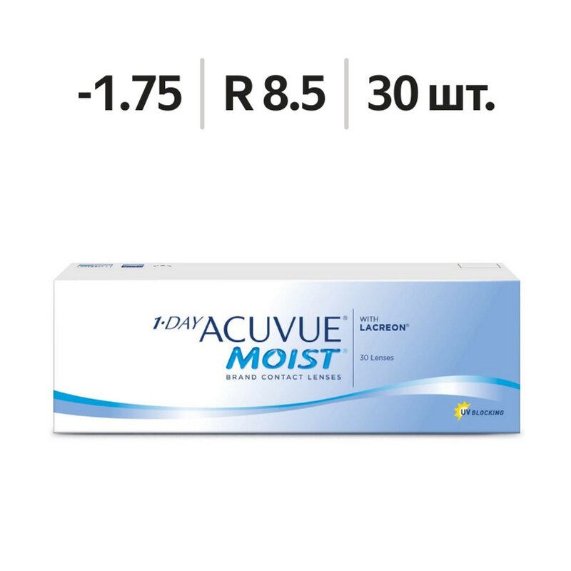 Линзы "1-Day Acuvue Moist" являются однодневными контактными линзами премиум-класса от производителя, известного во всем мире, Johnson & Johnson. Их создавали для того, чтобы глаза человека были постоянно увлажненными, а комфорт от их ношения не покидал вас в течение всего дня. Основное достоинство "1-Day Acuvue Moist" - это запатентованная технология Lacreon, которая позволяет наделить материал линзы увлажняющим агентом. Это дает возможность не только дополнительно увлажнять глазную поверхность, но и держать 100% увлажняющий компонент внутри линз на протяжении всего дня. Кроме этого такие линзы блокируют поступление УФ-A луча (более 70%) и УФ-В луча (95 %). Контактные линзы 1•DAY ACUVUE® MOIST™ дают Вам следующие преимущества: •длительное ощущение свежести и комфорта для глаз, отсутствие сухости глаз даже в конце дня; •высокая степень защиты от УФ-лучей. УФ-фильтр задерживает более 80% УФ-A лучей и 97% УФ-В лучей.