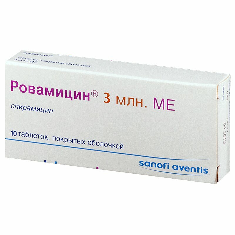 Антибиотик из группы макролидов. Механизм антибактериального действия обусловлен торможением синтеза белка в микробной клетке за счет связывания с 50S-субъединицей рибосомы. Чувствительные микроорганизмы (МПК<1 мг/л): грамположительные аэробы - Bacillus cereus, Corynebacterium diphtheriae, Enterococcus spp., Rhodococcus equi, Staphylococcus spp. (метициллин-чувствительные и метициллин-резистентные штаммы), Streptococcus B, неклассифицированный стрептококк, Streptococcus pneumoniae, Streptococcus pyogenes; грамотрицательные аэробы - Bordetella pertussis, Branhamella catarrhalis, Campylobacter spp., Legionella spp., Moraxella spp.; анаэробы - Actinomyces spp., Bacteroides spp., Eubacterium spp., Mobiluncus spp., Peptostreptococcus spp., Porphyromonas spp., Prevotella spp., Propionibacterium acnes; разные - Borrelia burgdorferi, Chlamydia spp., Coxiella spp., Leptospira spp., Mycoplasma pneumoniae, Treponema pallidum, Toxoplasma gondii. Умеренно чувствительные микроорганизмы (антибиотик умеренно активен in vitro при концентрациях антибиотика в очаге воспаления ≥ 1 мг/л, но < 4 мг/л): грамотрицательные аэробы - Neisseria gonorrhoeae; аэробы - Clostridium perfringens; разные - Ureaplasma urealyticum. Устойчивые микроорганизмы (МПК>4 мг/л; по крайней мере 50% штаммов являются устойчивыми): грамположительные аэробы - Corynebacterium jekeium, Nocardia asteroides; грамотрицательные аэробы - Acinetobacter spp., Enterobacter spp., Haemophilus spp., Pseudomonas spp.; анаэробы - Fusobacterium spp.; разные - Mycoplasma hominis.Всасывание Абсорбция спирамицина происходит быстро, но неполно, с большой вариабельностью (от 10% до 60%). После приема Ровамицина внутрь в дозе 6 млн.МЕ Cmax спирамицина в плазме составляет около 3.3 мкг/мл. Прием пищи не влияет на абсорбцию. Распределение Связывание с белками плазмы низкое (приблизительно 10%). Vd примерно 383 л. Препарат хорошо проникает в слюну и ткани (концентрация в легких составляет 20-60 мкг/г, в миндалинах - 20-80 мкг/г, в инфицированных пазухах - 75-110 мкг/г, в костях - 5-100 мкг/г). Спустя 10 дней после окончания лечения концентрация спирамицина в селезенке, печени, почках составляет 5-7 мкг/г. Спирамицин проникает и накапливается в фагоцитах (нейтрофилы, моноциты и перитонеальные и альвеолярные макрофаги). У человека концентрации препарата внутри фагоцитов являются достаточно высокими. Этим объясняется эффективность спирамицина в отношении внутриклеточных бактерий. Проникает через плацентарный барьер (концентрация в крови плода составляет примерно 50% от концентрации в сыворотке крови матери). Концентрации в ткани плаценты в 5 раз выше, чем соответствующие концентрации в сыворотке крови. Выделяется с грудным молоком. Спирамицин не проникает в спинномозговую жидкость. Метаболизм и выведение Спирамицин метаболизируется в печени с образованием активных метаболитов с неустановленной химической структурой. T1/2 из плазмы составляет приблизительно 8 ч. Выводится главным образом с желчью (концентрация в 15-40 раз выше, чем в сыворотке). Почечная экскреция составляет около 10% от введенной дозы. Количество препарата, выделяющееся через кишечник (с калом), очень незначительно.