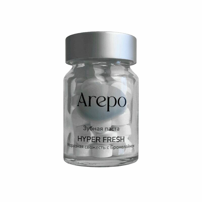 Arepo, Hyper Fresh - Морозная свежесть с протеолитическим Бромелайном, который расщепляет белковые связи в зубном налете, способствуя его очищению. Максимальная свежесть дыхания достигается за счет синергии Бромелайна и Ментола, двух эффективных компонентов. Эфирное масло перечной мяты проявляет антибактериальное и антисептическое действие + свежесть дыхания в купе с ментолом, сохраняющаяся на целый день. Имеет противовоспалительные свойства.