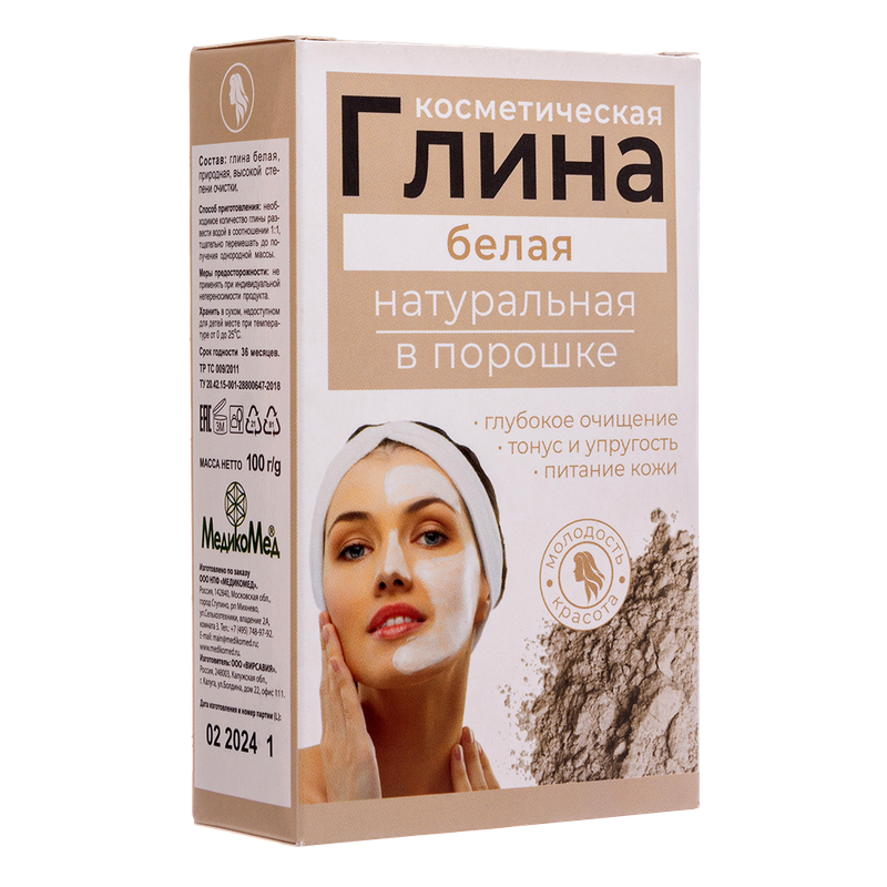 Глина косметическая МедикоМед белая натуральная 100 г