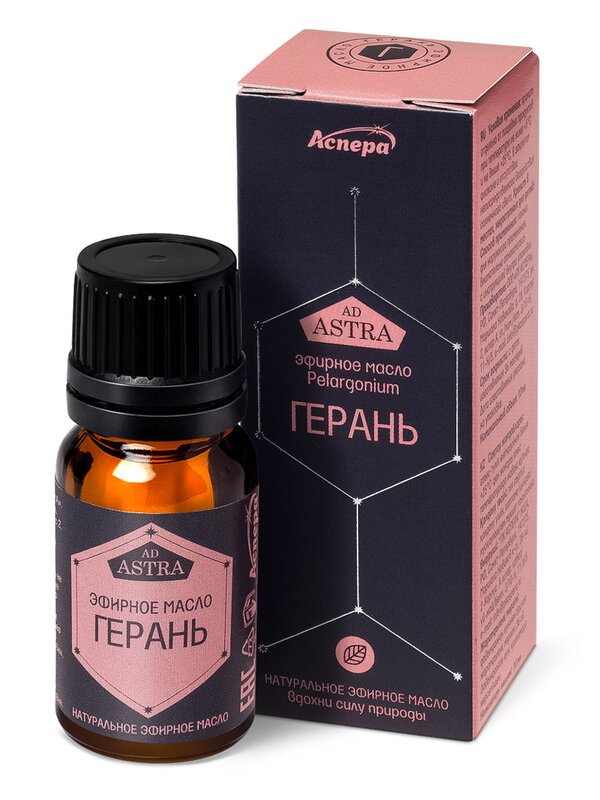 Аромат эфирного масла герани способствует устранению чувства беспокойства, депрессии и просто поднятию настроения. Благотворно влияет на нервно-психическую деятельность, в частности на повышение работоспособности, концентрации внимания, на снятие усталости, на улучшение умственной и физической активности. В косметологии применяется в составе косметических средств. Обогащая кожу целебными веществами, тонизирует и увлажняет её. Способствует снятию раздражения кожи, восстановлению ее эластичности. Для волос эфирное масло герани используется в масляных или кремовых масках для ухода за любым типом волос, благотворно влияет на укрепление корней и структуры волос. Эфирное масло герани в составе косметических средств по уходу за ногтями, способствует укреплению ногтей и предупреждению их расслаивания. Благотворно влияет на улучшение состояния слизистой оболочки рта и десен. Аромат эфирного масла герани эффективно отпугивает насекомых, мух, муравьев и комаров.