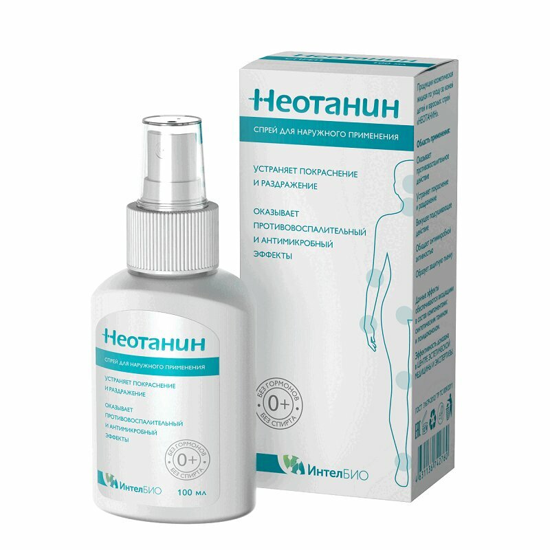 При остром воспалении с мокнутием применяется Неотанин спрей: противовоспалительное, подсушивающее и вяжущее действие с антисептическим эффектом, двойное противозудное действие, быстрый противозудный эффект (в течение нескольких минут), не содержит гормонов, минимальный риск побочных реакций, более выраженный клинический эффект и сокращение сроков лечения по сравнению c классическими формами местной терапии, применение не приводит к системным побочным эффектам, применяется у детей с рождения, у пациентов со стероидофобией (20 - 40% пациентов), при локализации поражения на лице, при обширных (более 20% поверхности кожи) площадях поражения, у пациентов с тяжелой сопутствующей соматической патологией, не окрашивает кожу, отпускается без рецепта.
