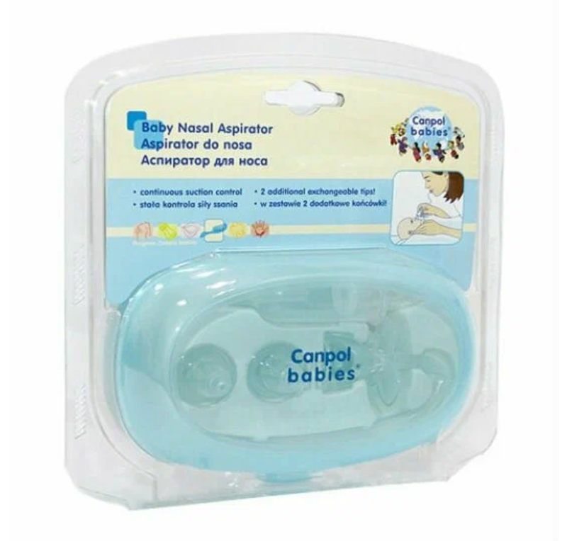 Canpol Аспиратор назальный в наборе с насадками в стильной удобной коробочке для хранения предназначен для детей в возрасте от 0 до 3 лет, которые еще не умеют сморкаться самостоятельно.