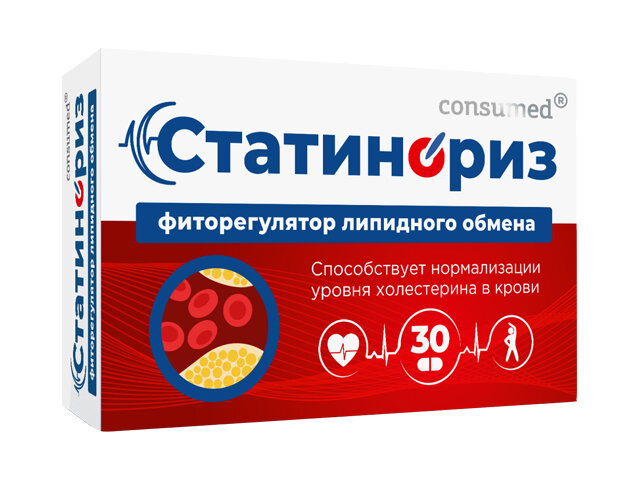 Биологически активная добавка к пище Статинориз Фиторегулятор липидного обмена, в состав которой входит "природный статин" - монаколин К (из красного ферментированного риса). Активные компоненты данного комплекса помогают понизить уровень холестерина в крови, снижают риск развития атеросклероза и других сердечно-сосудистых заболеваний. Применяется в качестве дополнения к медицинской противохолестериновой терапии и диете.