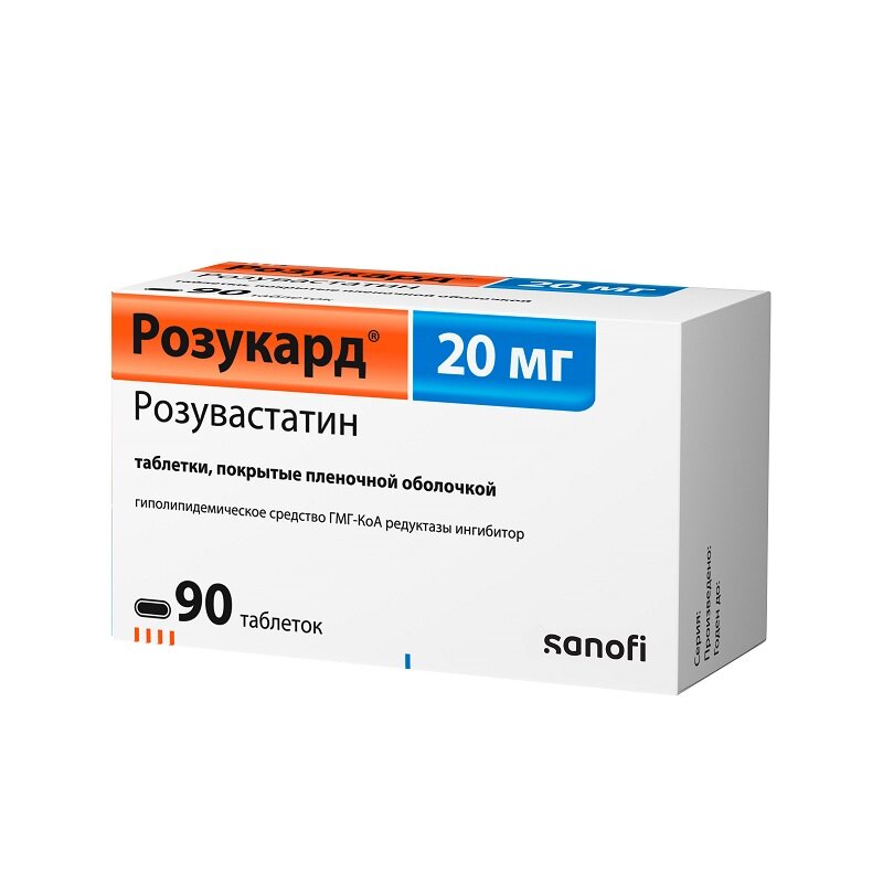Со стороны крови и лимфатической системы: редко - тромбоцитопения. Со стороны нервной системы: часто - головная боль, головокружение; очень редко - периферическая невропатия, потеря или снижение памяти; частота неизвестна - нарушения сна, включая бессонницу и кошмарные сновидения. Нарушения психики: частота неизвестна - депрессия. Со стороны пищеварительной системы: часто - тошнота, запор, боль в животе; нечасто - рвота; редко - панкреатит; частота неизвестна - диарея. Со стороны печени и желчевыводящих путей: редко - дозозависимое транзиторное повышение активности АСТ и АЛТ; очень редко - гепатит, желтуха. Со стороны дыхательной системы: частота неизвестна - кашель, диспноэ. Со стороны иммунной системы: редко – реакции гиперчувствительности, включая ангионевротический отек. Со стороны скелетно-мышечной системы и соединительной ткани: часто - миалгия; редко - миопатия (включая миозит), рабдомиолиз с острой почечной недостаточностью и без нее (у пациентов, получавших лечение в дозах >20 мг/сут); очень редко - артралгия; частота неизвестна - иммуноопосредованная некротизирующая миопатия. Со стороны кожи и подкожных тканей: нечасто - кожный зуд, крапивница, кожная сыпь; частота неизвестна - синдром Стивенса-Джонсона. Со стороны почек и мочевыводящих путей: часто - протеинурия; очень редко - гематурия. Изменения количества белка в моче (от отсутствия или следовых количеств до ++ или больше) наблюдаются у менее 1% пациентов, получающих дозу препарата 10-20 мг/сут, и у приблизительно 3% пациентов, получающих 40 мг/сут. Протеинурия уменьшается в процессе терапии и не связана с возникновением заболевания почек или инфекцией мочевыводящих путей. Со стороны половых органов и молочной железы: очень редко - гинекомастия. Лабораторные показатели: нечасто - дозозависимое повышение активности сывороточной КФК (в большинстве случаев незначительное, бессимптомное и временное). При повышении активности более чем в 5 раз по сравнению с ВГН терапию препаратом Розукард® следует временно приостановить. Повышение концентрации гликозилированного гемоглобина в плазме крови. Прочие: часто - астенический синдром; частота неизвестна - периферические отеки. При применении препарата Розукард® отмечались изменения следующих лабораторных показателей: повышение концентрации глюкозы, билирубина, активности ЩФ, ГГТ. О развитии следующих нежелательных явлений сообщалось во время применения некоторых статинов: эректильная дисфункция; единичные случаи интерстициального заболевания легких (особенно при длительном применении); сахарный диабет 2 типа: частота зависит от наличия или отсутствия факторов риска (концентрация глюкозы в крови натощак 5.6-6.9 ммоль/л, ИМТ >30 кг/м2, гипертриглицеридемия, артериальная гипертензия в анамнезе).