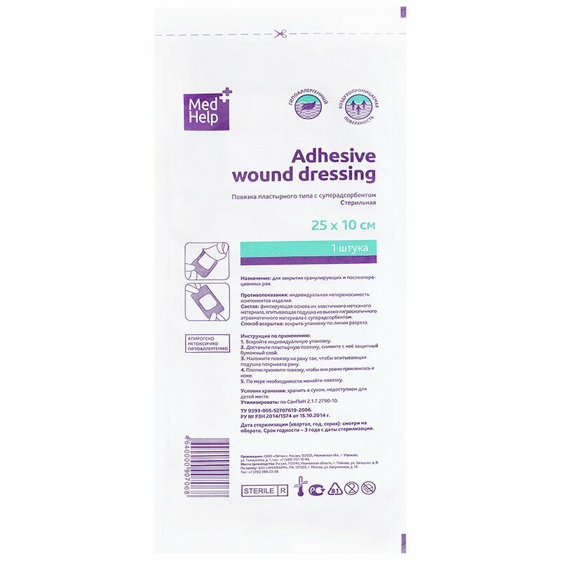 Самоклеящаяся пластырная повязка с впитывающей подушечкой. Изготовлена из паро- и воздухопроницаемого нетканого материала, который препятствует проникновению в рану микроорганизмов. Используется для защиты послеоперационных и острых ран в процессе их заживления от вторичной инфекции и механических раздражений, а также для фиксации катетеров и канюль.