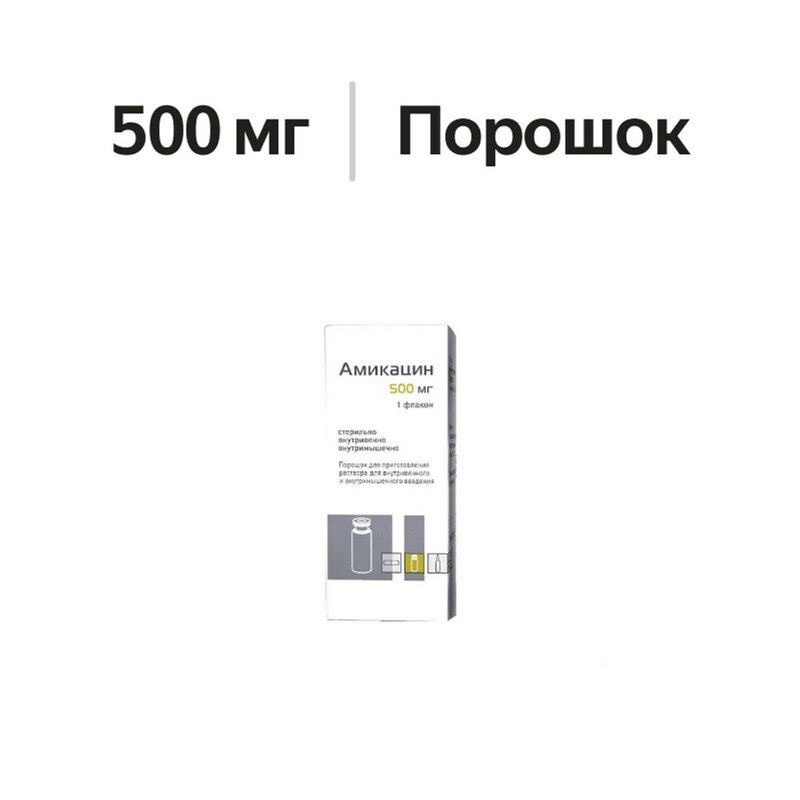 Амикацин порошок для приготовления раствора для в/в и в/м введения 500 мг 1 шт.