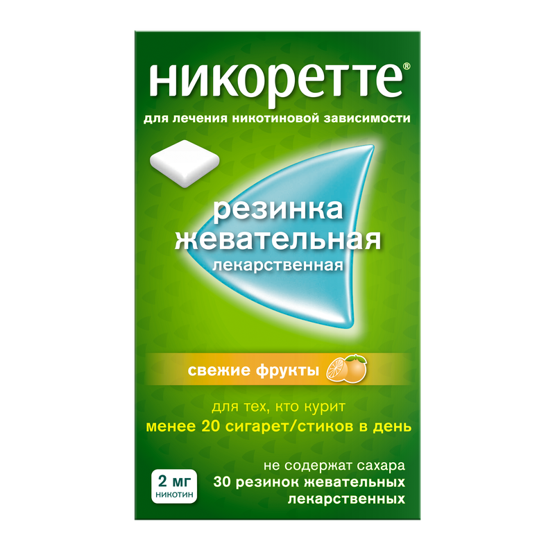 Никоретте жевательная резинка 2 мг свежие фрукты 30 шт.