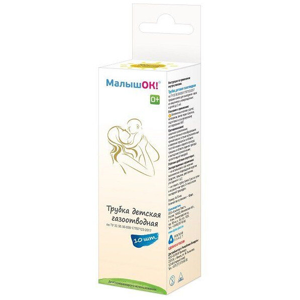 Трубка детская газоотводная Малышок - это удобное и безопасное средство для удаления газов из кишечника грудничка, болезненные колики у детей, вялая перистальтика. Каждая трубка для одноразового использования. Трубки выполнены из мягкого гипоаллергенного материала и имеют удобную форму для введения в прямую кишку. В упаковке 10 трубок, что обеспечивает длительное использование. Проблемы излишнего газообразования и появляющиеся от этого колики могут беспокоить малышей до четырех месяцев и далее. Края трубки тщательно обработаны и закруглены для обеспечения атравматичной установки, 2 боковых отверстия для лучшего отвода газов. Использование газоотводных трубок помогает избежать дискомфорта и болезненных ощущений у малыша, а также способствует его здоровому сну и улучшает аппетит.