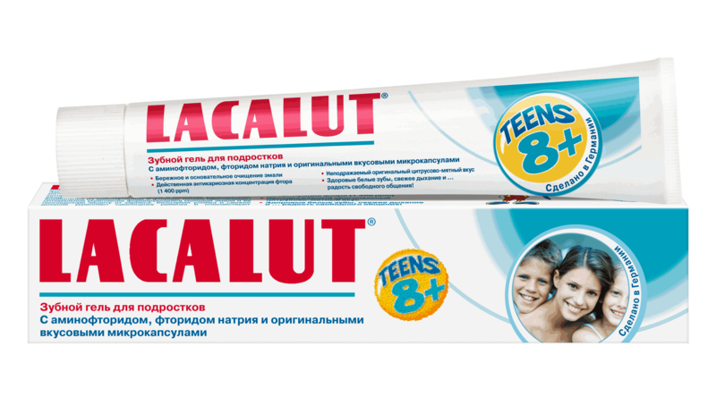 Зубная паста для подростков Lacalut Teens 8+ имеет гелеобразную текстуру и приятный цитрусово-мятный вкус, который нравится детям. Комбинация аминофторида и фторида натрия эффективно укрепляет зубную эмаль и защищает от кариеса. Низкий показатель абразивности в пасте позволяет бережно и тщательно очистить эмаль от налета.