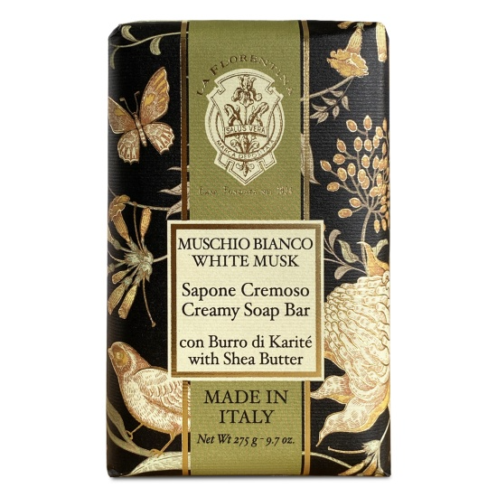 Sodium palmate, Sodium cocoate, Aqua (Water), Sodium olivate, Glycerin, Parfum (Fragrance), Butyrospermum parkii (Shea) butter, Sodium chloride, Sodium citrate, Tetrasodium etidronate, Benzyl alcohol, Linalool, Limonene, Coumarin, Eugenol, Citronellol.