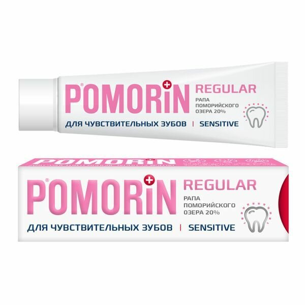 POMORIN REGULAR Sensitive – добавленный в состав пасты Цитрат калия снижает чувствительность зубов до 40% после 2-4 недель регулярного применения. Уникальный состав рапы Поморийского озера активно насыщает эмаль необходимыми минералами, восстанавливая и укрепляя ее.