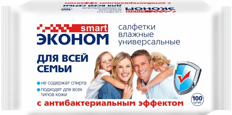 Влажные салфетки Smart Эконом универсальные с антибактериальным эффектом 100 шт.