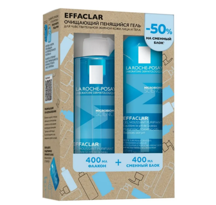 Очищающий пенящийся гель Effaclar Gel на основе термальной воды очищает лицо от загрязнений, макияжа и избытка себума, обладает матирующим и антибактериальным эффектом, способствует сокращению несовершенств. Активные ингредиенты: Коко-бетаин – поверхностно-активное вещество, вырабатываемое из жирных кислот кокосового масла, обеспечивает мягкое очищение кожи, не нарушая целостность защитного барьера. Термальная вода La Roche-Posay – смягчает, успокаивает кожу, обеспечивает антиоксидантный и увлажняющий эффект. Цинк – матирует кожу, сокращая следы жирности и сальный блеск.