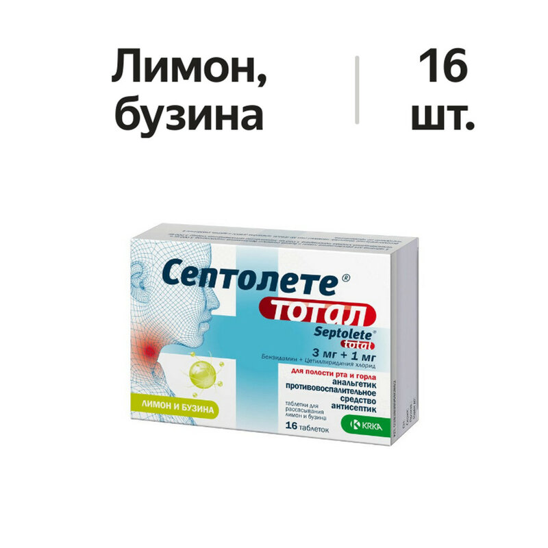 Таблетки следует медленно рассасывать во рту каждые 3-6 часов. Взрослые, пациенты пожилого возраста и дети старше 12 лет: рекомендованная доза составляет 3-4 таблетки в сутки. Дети от 6 до 12 лет: рекомендованная доза составляет 3 таблетки в сутки. Не следует превышать указанную дозу. Препарат Септолете тотал не следует применять одновременно с другими препаратами из группы антисептиков. Препарат Септолете тотал не следует применять более 7 дней.